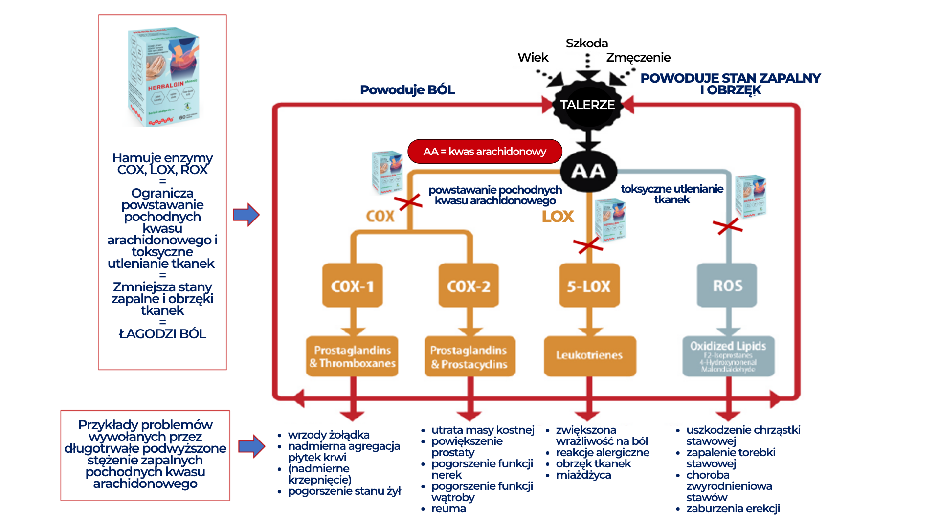 Na zdjęciu przedstawiono, w jaki sposób HERBALGIN pomaga zmniejszać stany zapalne w organizmie.