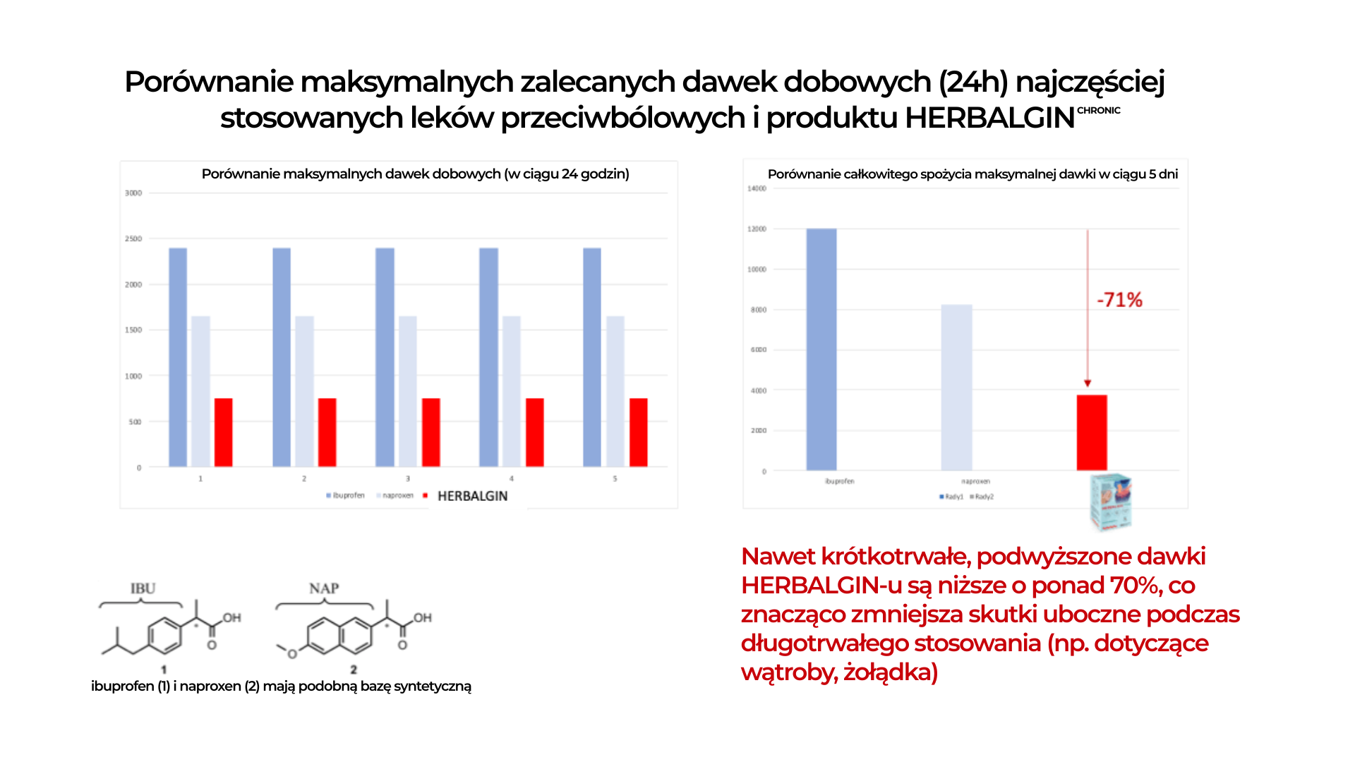 HERBALGIN był w stanie skutecznie podtrzymać działanie przeciwbólowe – przy średnio o 71% niższej dawce dziennej w porównaniu do leków NLPZ. Lekarze odnotowali również u większości uczestników niewielką poprawę parametrów wątrobowych.