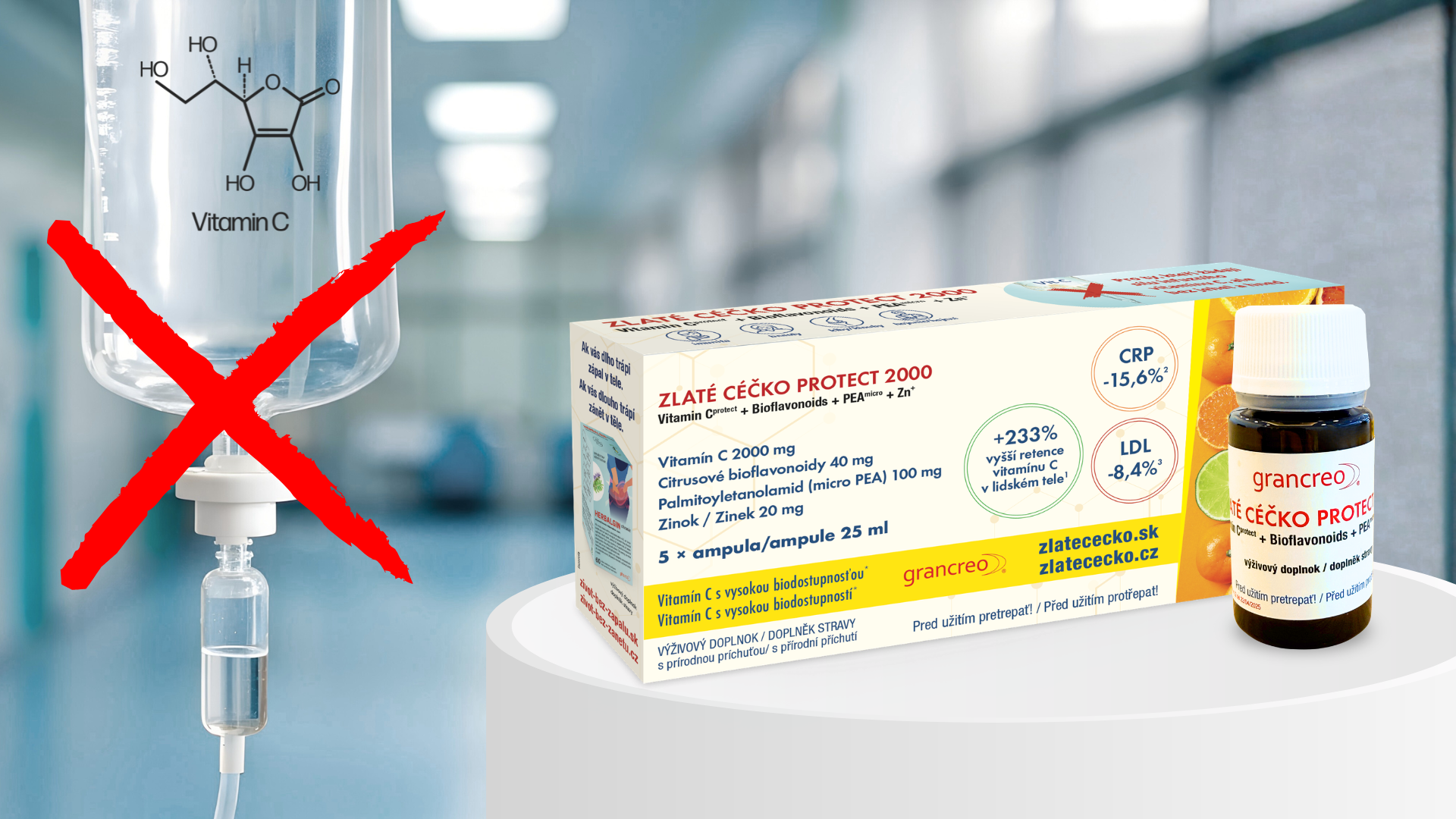 Od ponad 4 lat na rynku dostępna jest unikalna, nowoczesna płynna witamina C o niemal 90-procentowej skuteczności biologicznej. Została opracowana jako wygodna doustna alternatywa dla witaminy C podawanej w infuzji. Dodatkowo została wzbogacona o cynk oraz substancję o działaniu przeciwzapalnym. Jej zaletą jest gotowa, płynna postać w ampułkach do natychmiastowego wypicia. Oznacza to, że można ją zastosować od razu — bez igieł i bez siedzenia w gabinecie lekarskim — a przy tym jest powszechnie dostępna w aptekach. (tłum.:a przy tym jest łatwo dostępna przez sklep internetowy.)